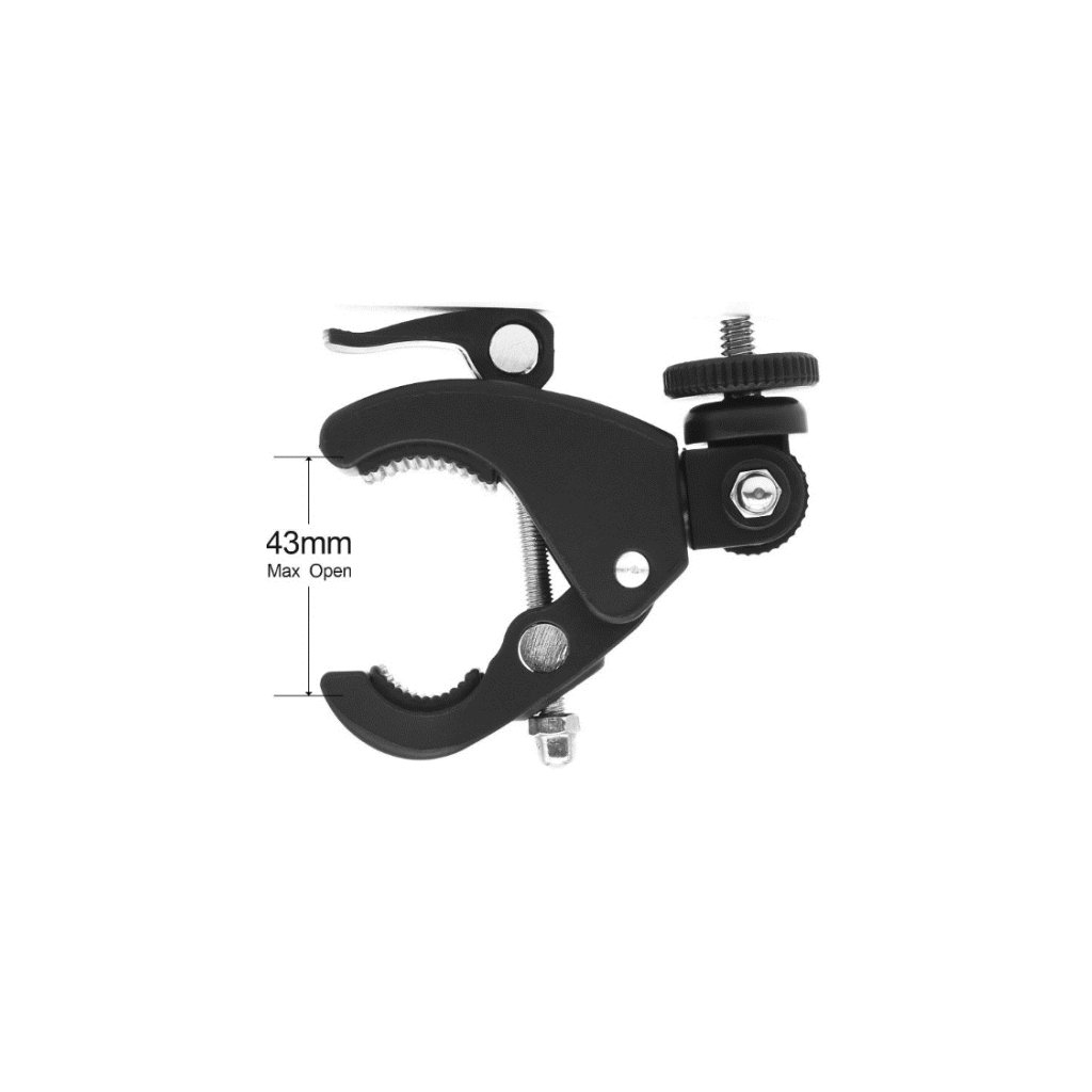 Lehká odolná konstrukce s pevným úchytem a univerzálním nastavení pro vaše řídítka. Držák akční kamery lze snadno upevnit na řídítka pomocí nastavitelné páčky. Díky otočnému kloubu lze natáčet vaší akční kameru v několika směrech. Použitelné po většinu akčních kamer a fotoaparátů se závitem šroubu 1/4.