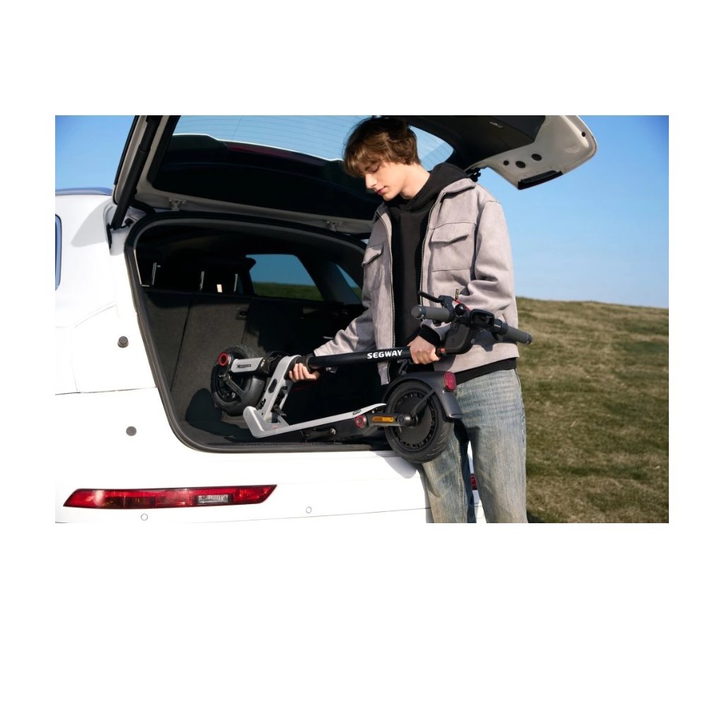 Výbava: | Vysoce výkonné integrované LED světla 4W, brzdové světlo, dvojíté odpružení aplikace, vyhledání koloběžky přes apple find me, klakson, směrová světla, proti defektové pneu, tempomat |