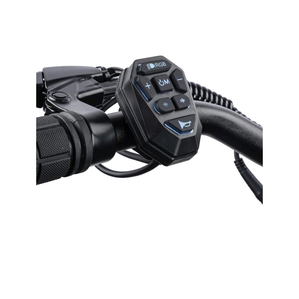| Výbava: | Skládací mech.,LED boční světla, Displej MInimotors, NFC uzamykání, světla, směrová světla, brzdové světlo, klakson, RGB, nabíječka,NFC uzamykání, APP pro ovládání a informace o baterii |