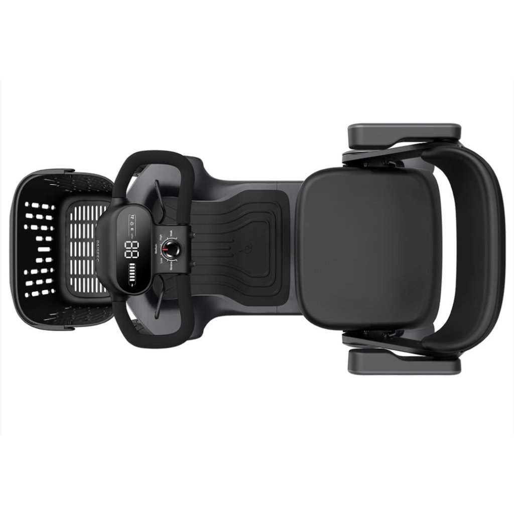 | Výbava: | skládáci, světlo a nabíjecí port na telefon v područce hlasové upozornění o provedených akcích,LED zadní světlo, LCD displej stavu baterie s joystickem, zvukový klakson |