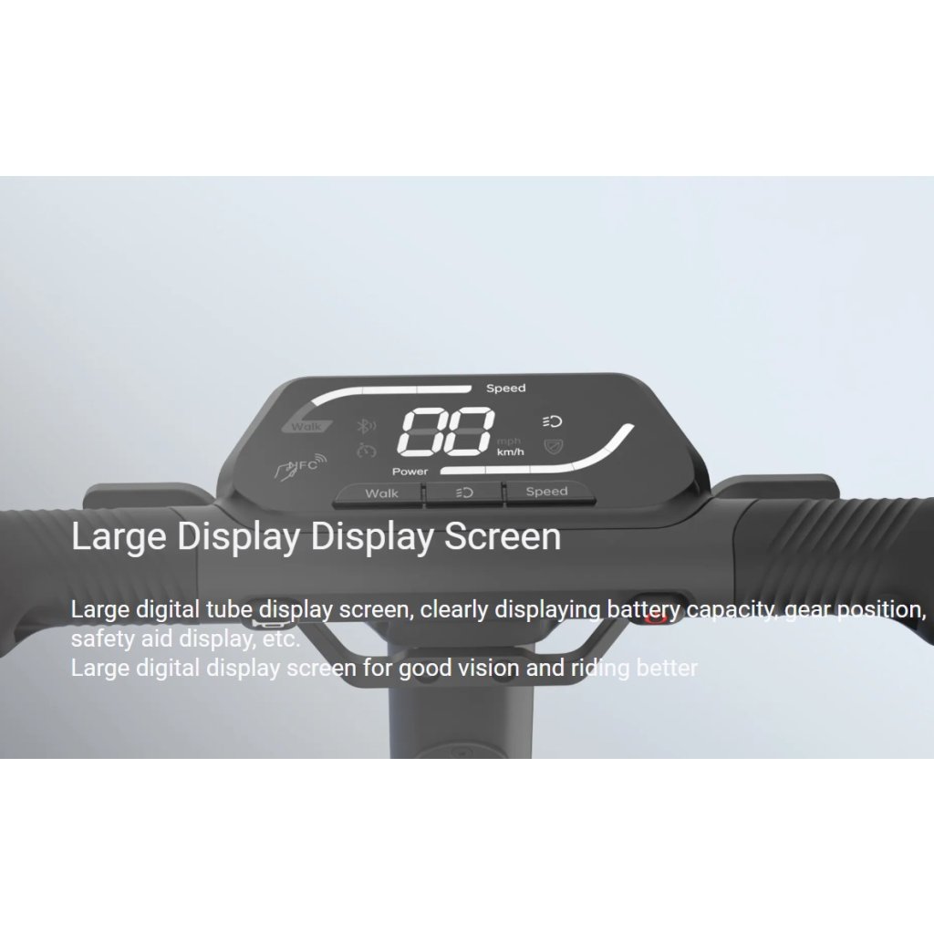 LCD displej na joysticku: Přehledný panel zobrazuje aktuální rychlost, ujeté kilometry a stav nabití v reálném čase.